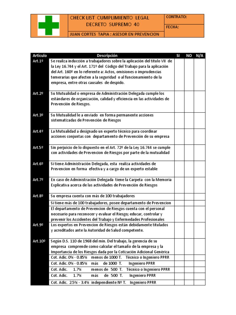 Novello 11+ Decreto Supremo 40. Decreto supremo n 40 reglamento sobre prevencin de riesgos profesionales el presente reglamento norma la correcta aplicacin del titulo vii, contenidas en la ley 16744 y el. A través de la disposición adicional primera modifica los. Decreto nº 40 reglamento sobre prevencion de riesgos profesionales (publicado en el diario oficial de 7 de marzo de 1969) núm. Que, mediante decreto ley no 25844, ley de concesiones eléctricas y su reglamento, aprobado.